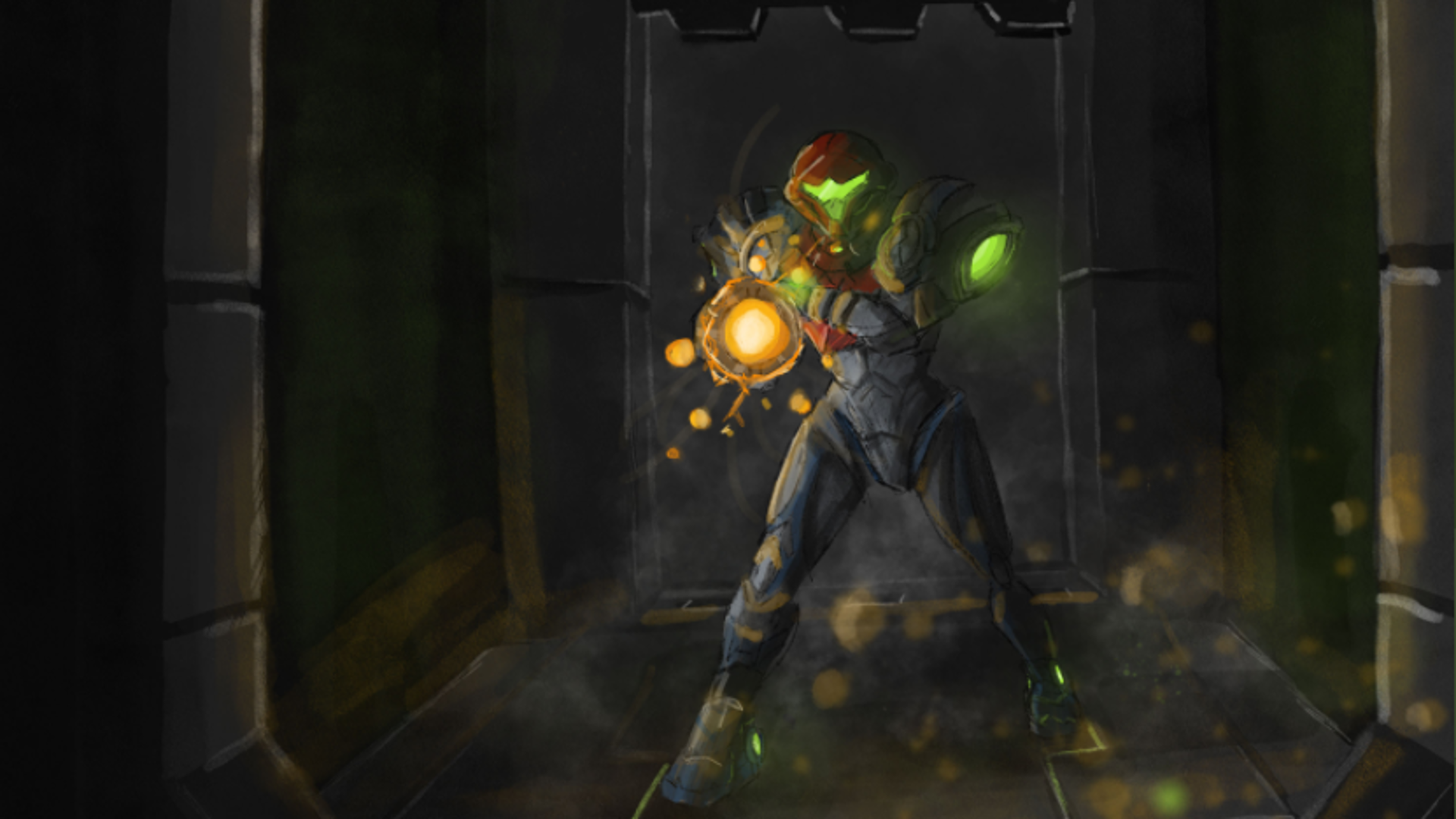 Grubb often works with independent artists to create unique cover art for each of his releases. For the release of “Metroid Theme,” artist Aurélien Mohr created the image below: