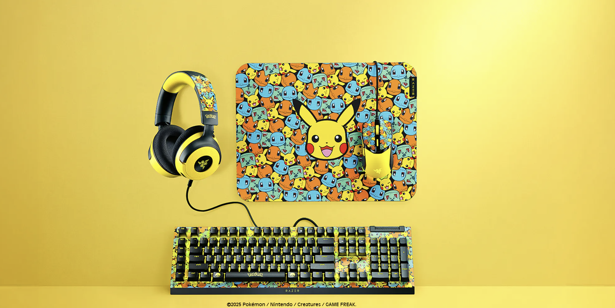 The Pokémon Company has partnered with Razer for some pretty slick gaming accessories featuring the beloved Kanto Region starters Charmander, Squirtle, and Bulbasaur, as well as Pikachu. Now available for purchase, for a pretty penny, you can own: