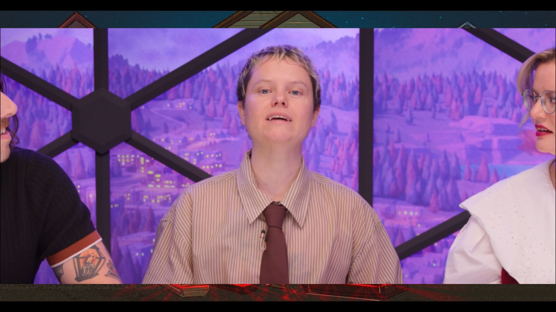 Players: Emily Axford (she/her) as Vesper Childers (she/her). Zac Oyama (he/him) as Zaeth Bondana (he/him). Siobhan Thompson (she/her) as La Contesse Madelaine (she/her). Lou Wilson (he/him) as LaVonte Worthy (he/him). Ally Beardsley (they/them) as HJ Wingstreet (he/him). Brian Murphy (he/him) as Mitch Frederick(he/him).